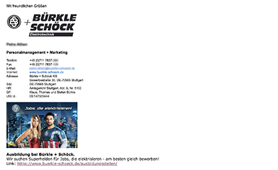 Ein oft vernachlässigte Kontaktchance: die E-Mail-Signatur wirbt bei jeder elektronischen Korrespondenz für die Kampagne.